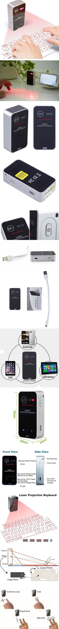 Take advantage of this wonderful portable laser keyboard with mouse compatible with multiple devices!
